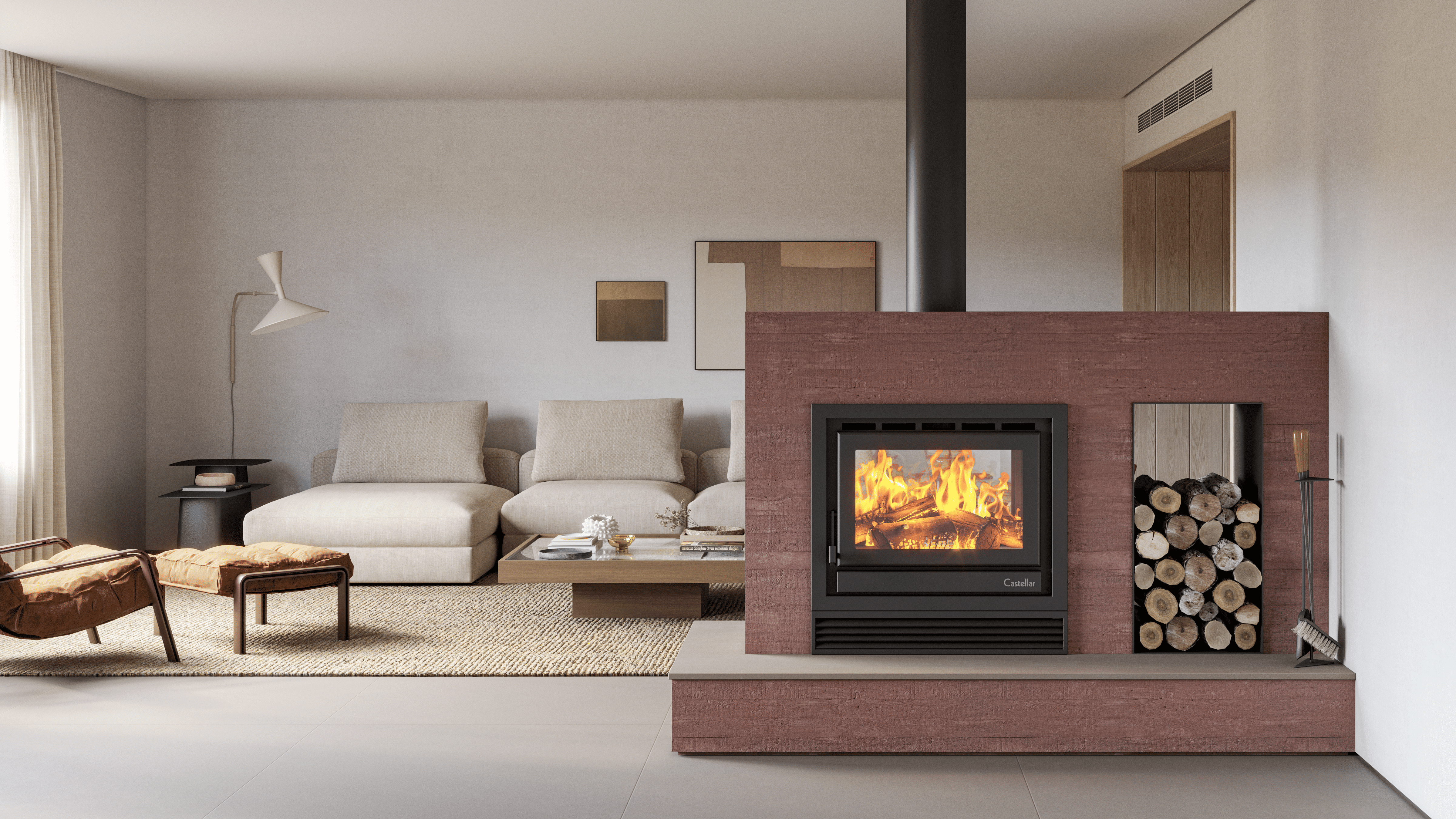 FacesA lareira Firenze Dupla Face Insert permite uma visão privilegiada da chama através de ambas as faces, com abertura e alimentação do fogo nos dois lados. O modelo oferece baixo consumo de lenha e alto desempenho. A porta de vitrocerâmico garante a segurança e o rendimento na combustão de energia, elimina o risco de soltar fagulhas, sem fumaça e cinzas no chão.