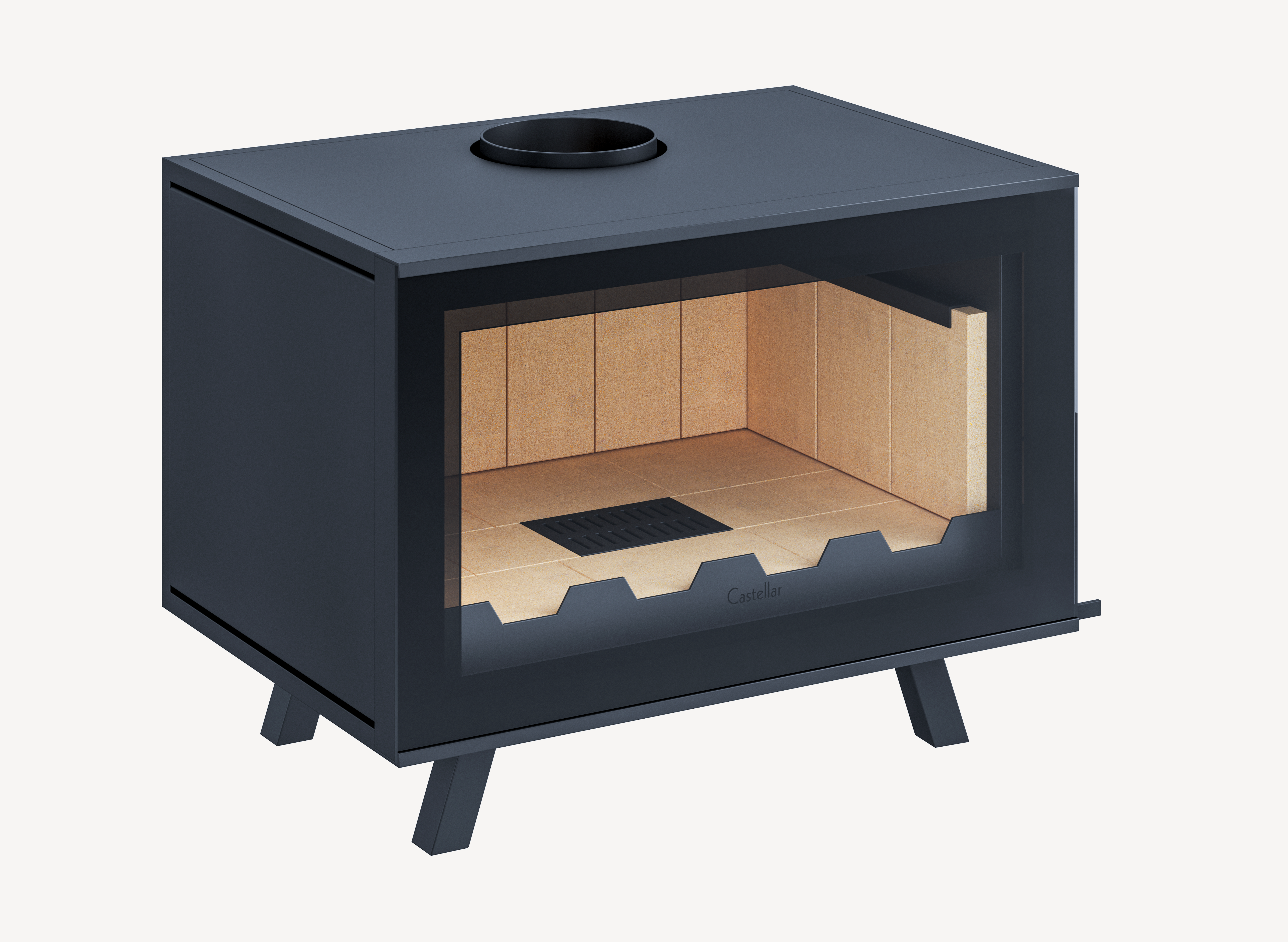 Seu vidro vitrocerâmico serigrafado reduz a visualização do metal e amplia o protagonismo das chamas, transformando o fogo em parte essencial da decoração.