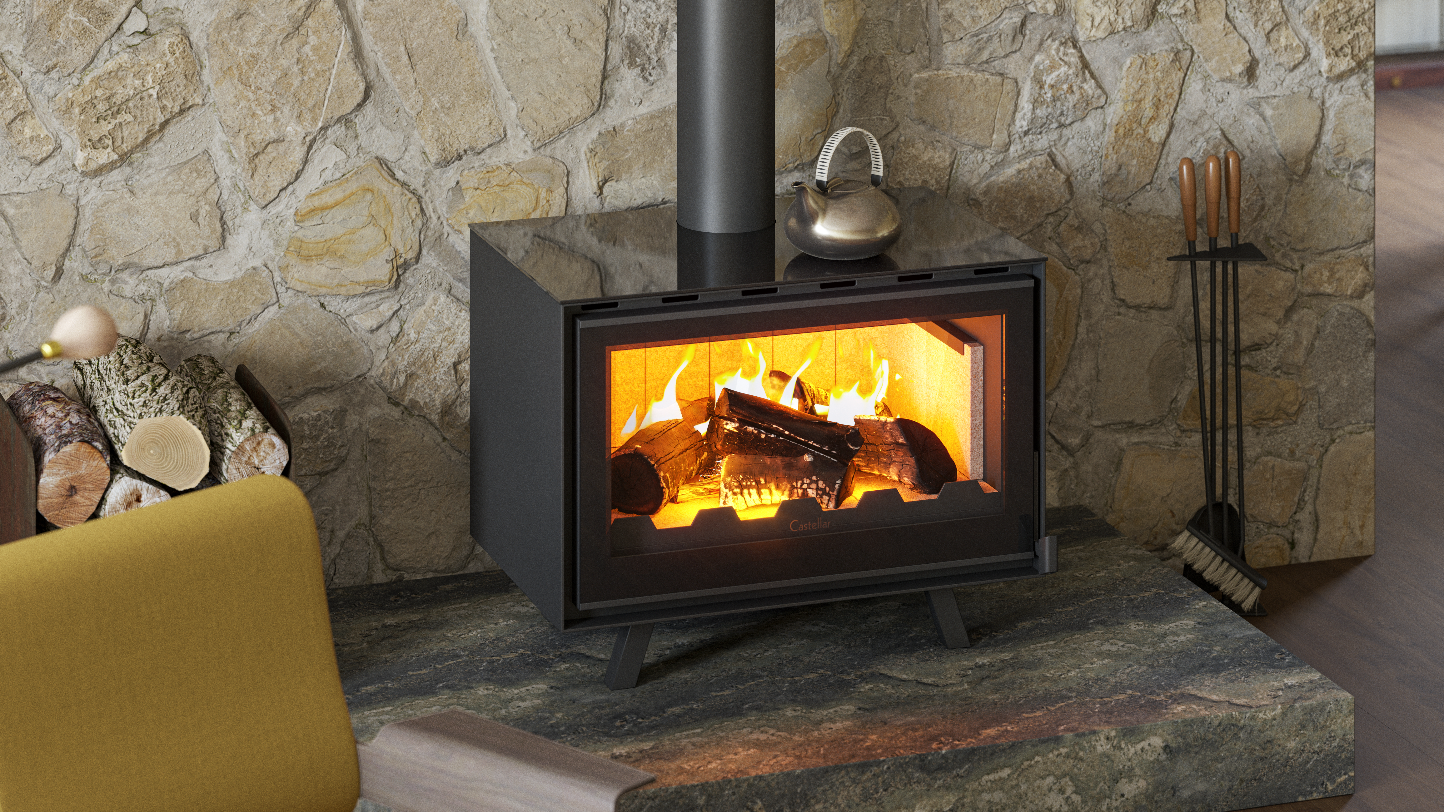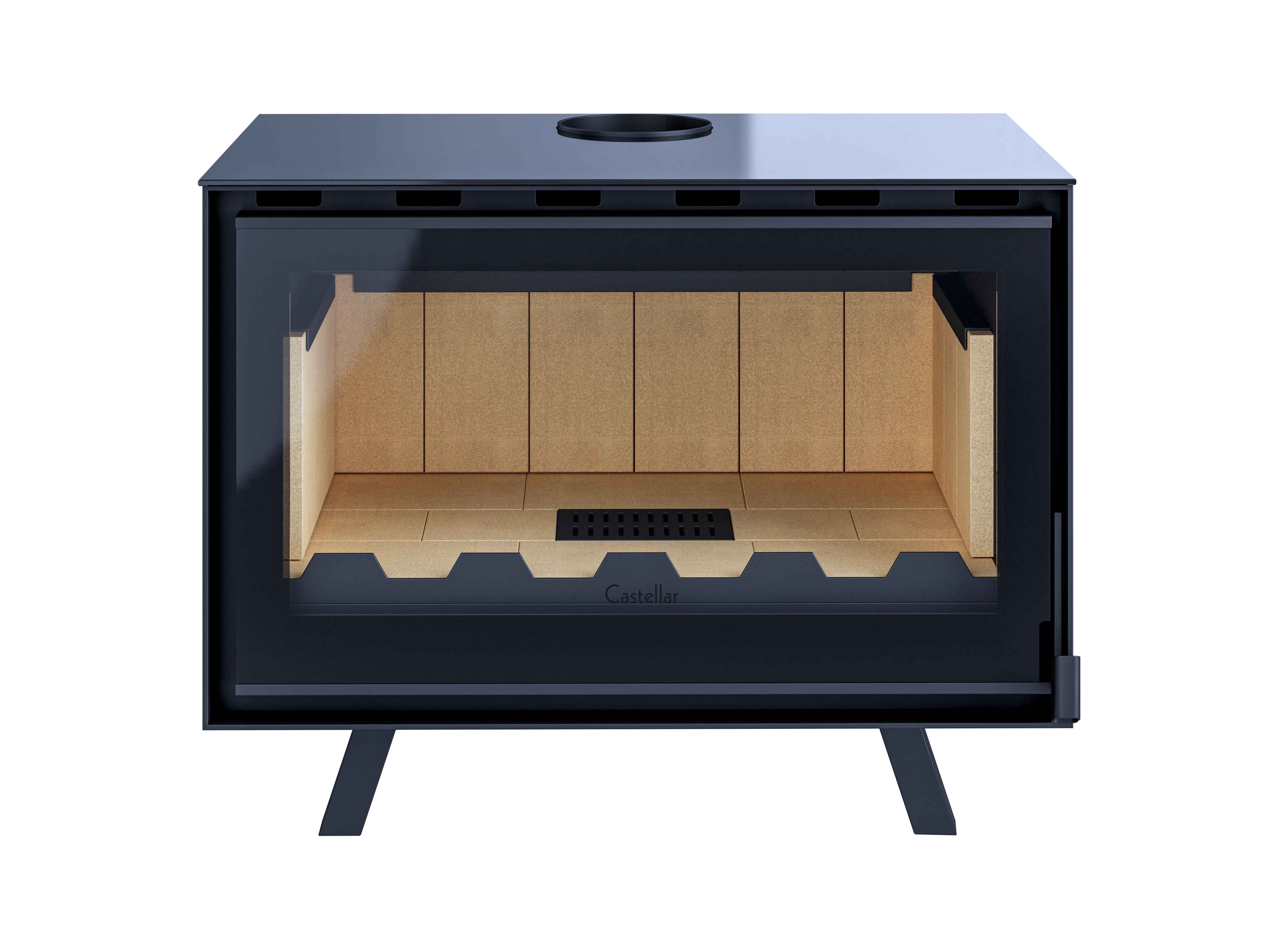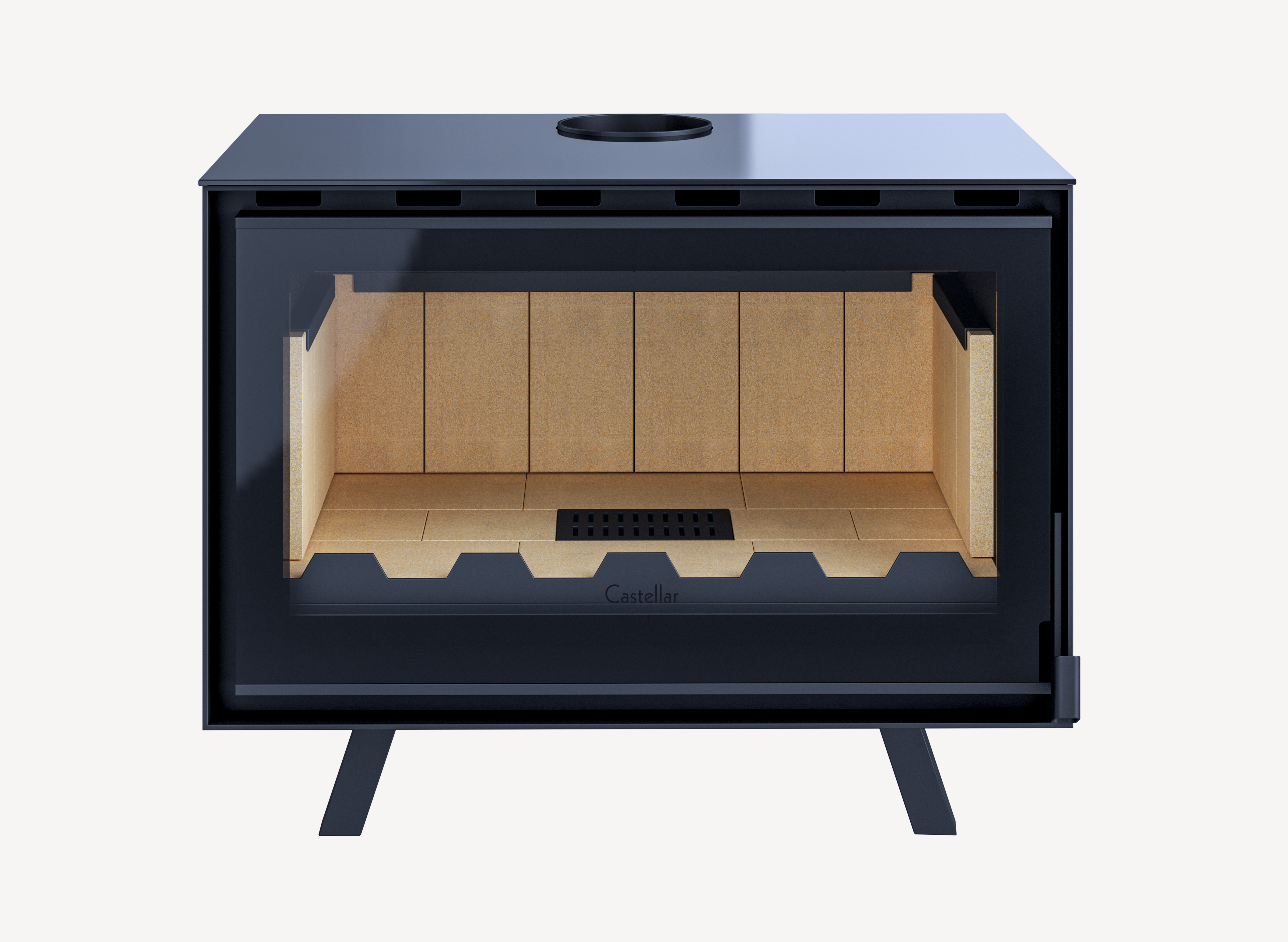 Seu vidro vitrocerâmico serigrafado amplia o protagonismo das chamas e reduz a presença do metal, revelando um visual mais leve, sofisticado e marcante.