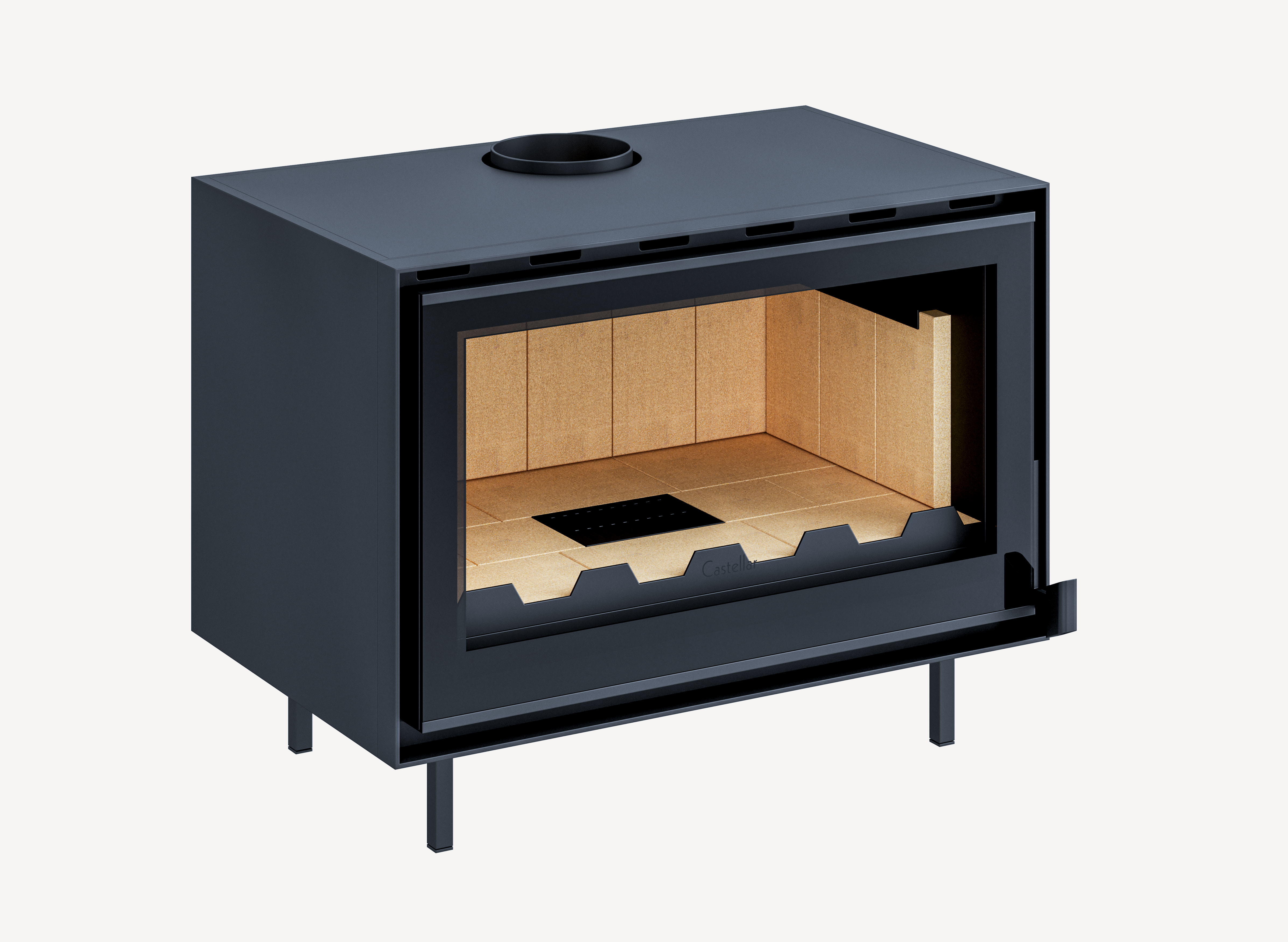 Seu vidro vitrocerâmico serigrafado reduz a visualização do metal e amplia o protagonismo das chamas, transformando o fogo em parte essencial da decoração.
